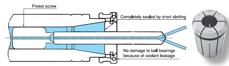 Metal-sealed high precision collet for tools with coolant hole